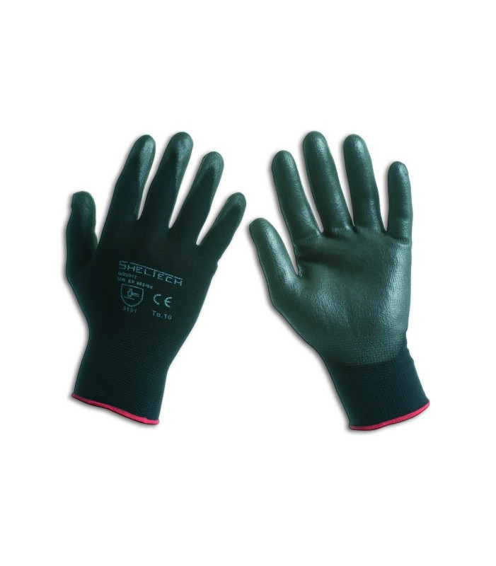 Guanto in nylon senza cuciture, copertura leggera in poliuretano che offre doti di presa senza confronti in differenti condizioni di utilizzo, leggero ed ergonomico, tessuto molto flessibile che aiuta la maneggevolezza, dorso areato per ventilare meglio la mano