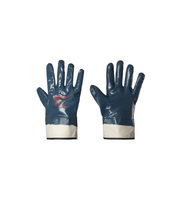 Guanto interamente rivestito in nitrile, fodera interna realizzata in cotone jersey, manichetta di sicurezza