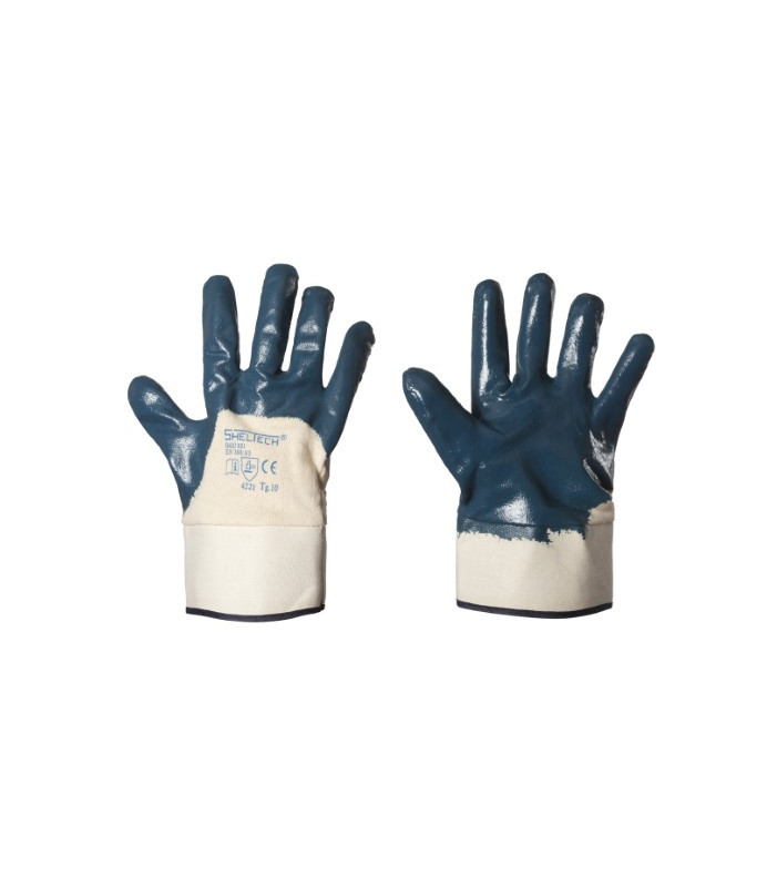 Guanto rivestito per ¾ in nitrile, fodera interna realizzata in cotone jersey, manichetta di sicurezza