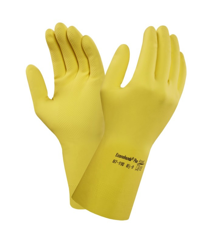 Guanto in lattice naturale per rischi minori, felpato all'interno, finitura a scaglie di pesce per maggiore presa, lunghezza 290 mm