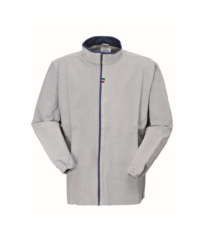Chiusura centrale con velcro, collo alla coreana, elastico ai polsi, fori di areazione sotto le ascelle
