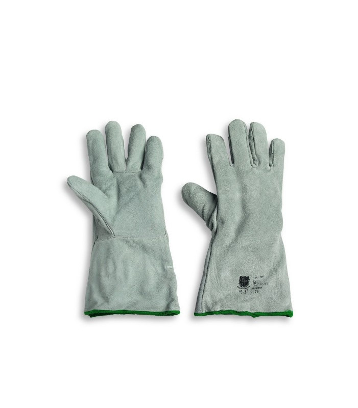 Guanto completamente in crosta, con felpatura interna, lunghezza totale cm 35, resistente al taglio, all'abrasione e allo strappo