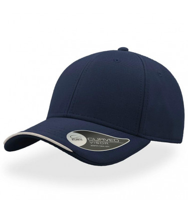 100% poliestere. cappellino a 6 pannelli, occhielli ricamati, pannello frontale rinforzato, visiera pre-curvata, chiusura in velcro, 4 cuciture su visiera, parasudore in poliestere, piping in contrasto, taglia unica.