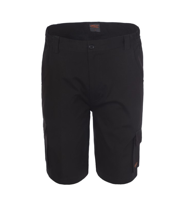 Chiusura alla patta con cerniera e bottone in cintura, elastico ai fianchi, due tasche anteriori interne, un tascone con soffietto laterale chiuso con aletta e velcro applicato su gamba destra, un taschino portacellulare con soffietto laterale chiuso con aletta e velcro applicato su gamba sinistra, due tasche posteriori applicate chiuse con velcro. 100% cotone canvas peso 220 g/m2