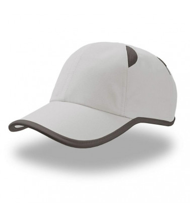 6 pannelli, pannello frontale non strutturato, visiera pre-curvata, chiusura in velcro, bordato con fettuccia, 4 inserti mesh per aerazione, parasudore: 35% cotone