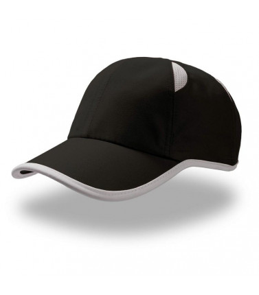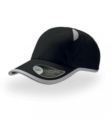 6 pannelli, pannello frontale non strutturato, visiera pre-curvata, chiusura in velcro, bordato con fettuccia, 4 inserti mesh per aerazione, parasudore: 35% cotone