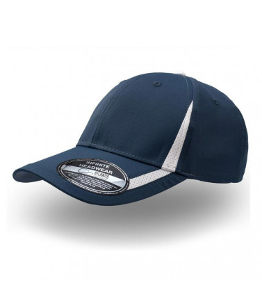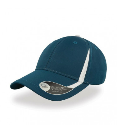 6 pannelli, occhielli ricamati, con inserti, pannello frontale rinforzato, visiera pre-curvata, chiusura in velcro, parasudore in poliestere, fettuccia su visiera,