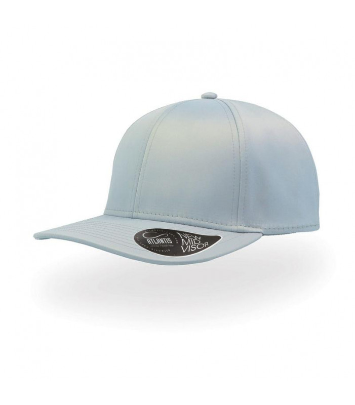 100% poliestere. cappellino a 6 pannelli con pannello frontale rinforzato, visiera pre-curvata, adesivo sulla visiera, parasudore in cotone, chiusura con fibbia e foro cucito, taglia unica.
