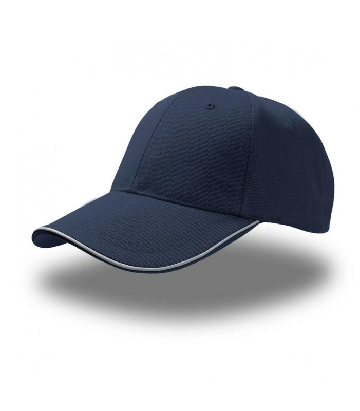 6 pannelli, occhielli ricamati, piping riflettente sulla visiera, piping riflettente sulla chiusura, pannello frontale rinforzato, visiera pre-curvata, chiusura con fibbia e foro cucito, 6 cuciture su visiera, parasudore: 35% cotone
