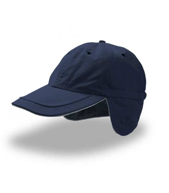 6 pannelli, piping, occhielli in metallo, paraorecchie, pannello frontale non strutturato, visiera pre-curvata, interno in pile, completamente chiuso, chiusura coulisse e stopper in plastica, antipioggia, antivento, antifreddo, 2 cuciture su visiera,