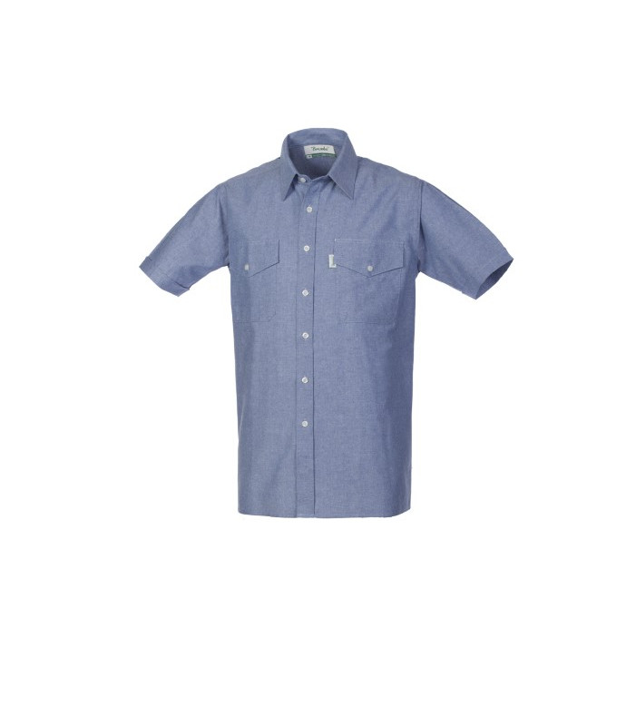 Chiusura centrale con bottoni, manica corta con risvolto, 2 taschini al petto di cui uno con portapenne chiusi con aletta e bottone 100% cotone oxford peso 130 g/m2
