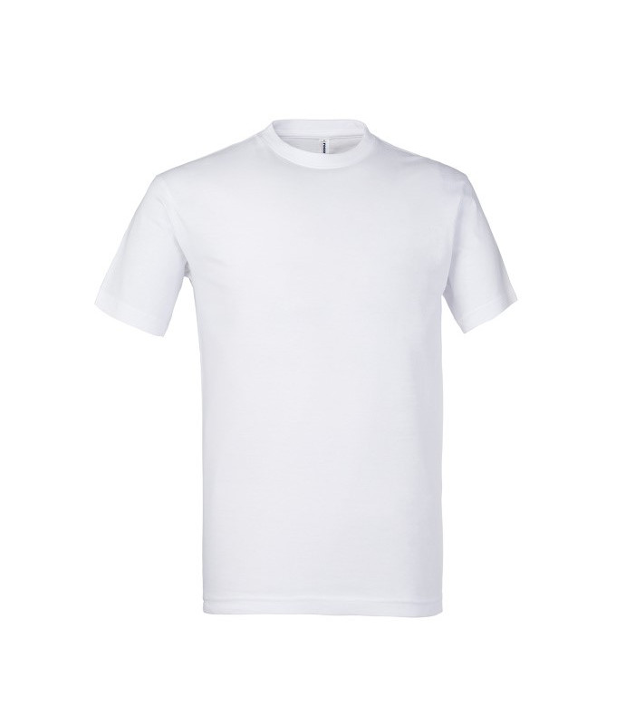 Girocollo, fascia parasudore nella parte posteriore del collo, doppia ribattitura al collo e alle spalle 100% cotone, peso 150 g/m2 per i colorati, peso 145 g/m2 per il bianco 85% cotone, 15% viscosa solo per il colore grigio melange
