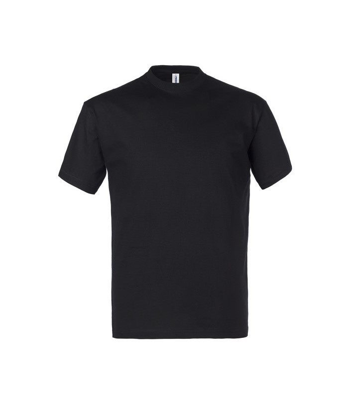 Girocollo, fascia parasudore nella parte posteriore del collo, doppia ribattitura al collo e alle spalle 100% cotone, peso 150 g/m2 per i colorati, peso 145 g/m2 per il bianco 85% cotone, 15% viscosa solo per il colore grigio melange