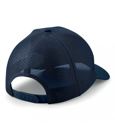 85% poliestere 15% cotone. cappellino a 6 pannelli con pannello centrale a visiera, pannelli posteriori a rete in 100% poliestere, visiera semiarrotondata, pannelli frontali strutturati, occhielli di ventilazione, taglia unica.