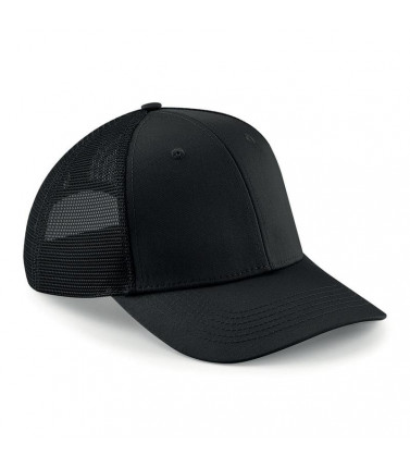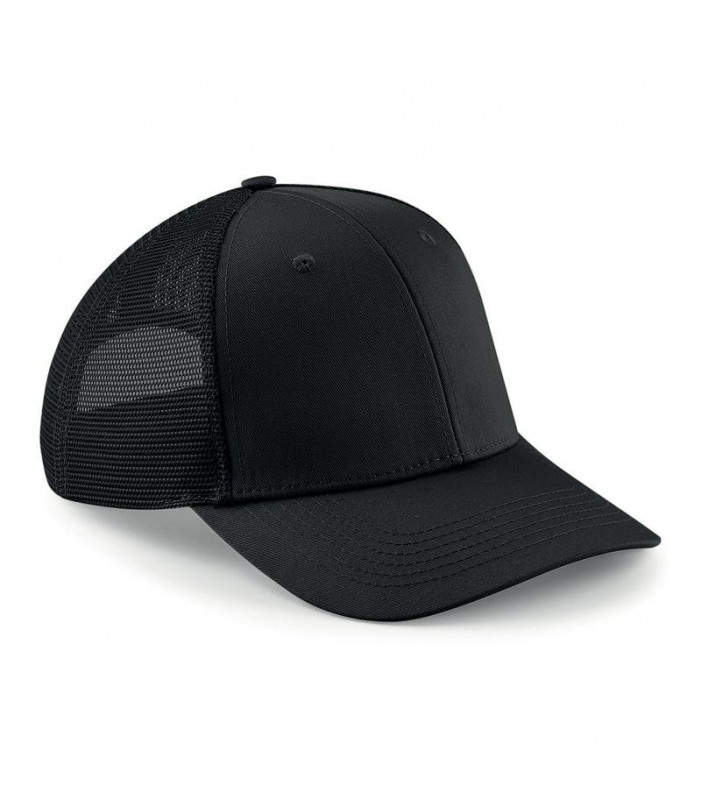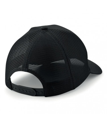 85% poliestere 15% cotone. cappellino a 6 pannelli con pannello centrale a visiera, pannelli posteriori a rete in 100% poliestere, visiera semiarrotondata, pannelli frontali strutturati, occhielli di ventilazione, taglia unica.