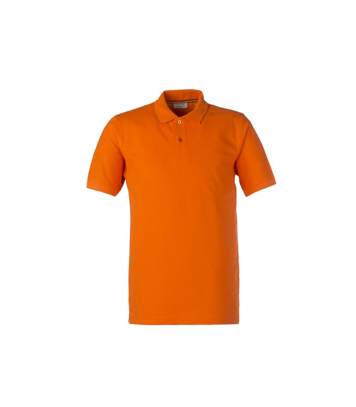 Collo chiuso con 2 bottoni, fascia parasudore di colore a contrasto nella parte posteriore del collo, spacchetti laterali al fondo di colore a contrasto, giromanica a costina 100% cotone piquè, peso 195 g/m2 98% cotone piquè, 2% viscosa solo per il colore grigio melange