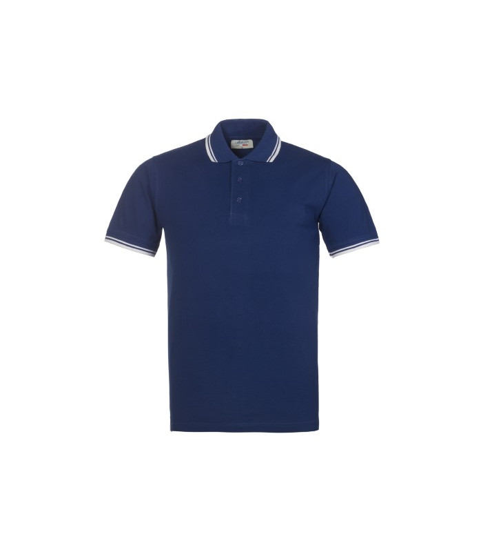 Manica corta, collo con profili di colore a contrasto chiuso con tre bottoni, spacchetti laterali al fondo con profili a contrasto, giromanica a costina con profili di colore a contrasto, fascia parasudore nella parte posteriore del collo 100% cotone piquè, peso 200 g/m2 98% cotone piquè, 2% viscosa solo per il colore grigio melange