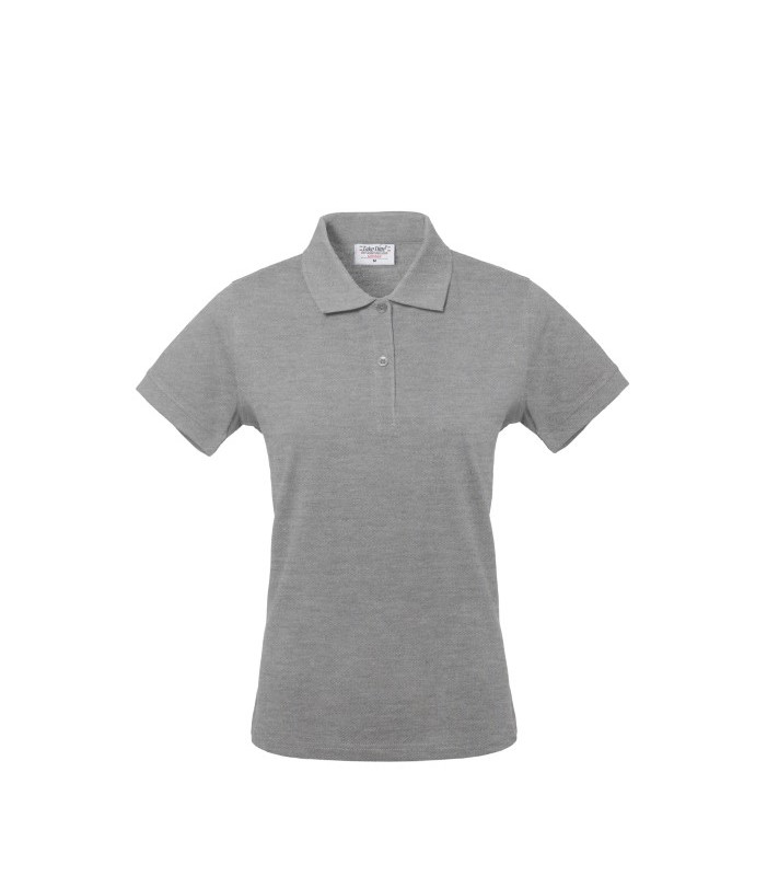 Collo chiuso con 2 bottoni, fascia parasudore nella parte posteriore del collo, giromanica a costina, spacchetti laterali al fondo 100% cotone 85% cotone piqué, 15% viscosa solo per il colore grigio melange peso 195 g/m2