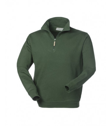 Collo alto chiuso con cerniera corta in plastica, polsi e fascia girovita in maglia elastica, parasudore interno al collo. (anche la felpa bianca ha la cerniera in plastica) 80% cotone 20% poliestere, peso 290 g/m2