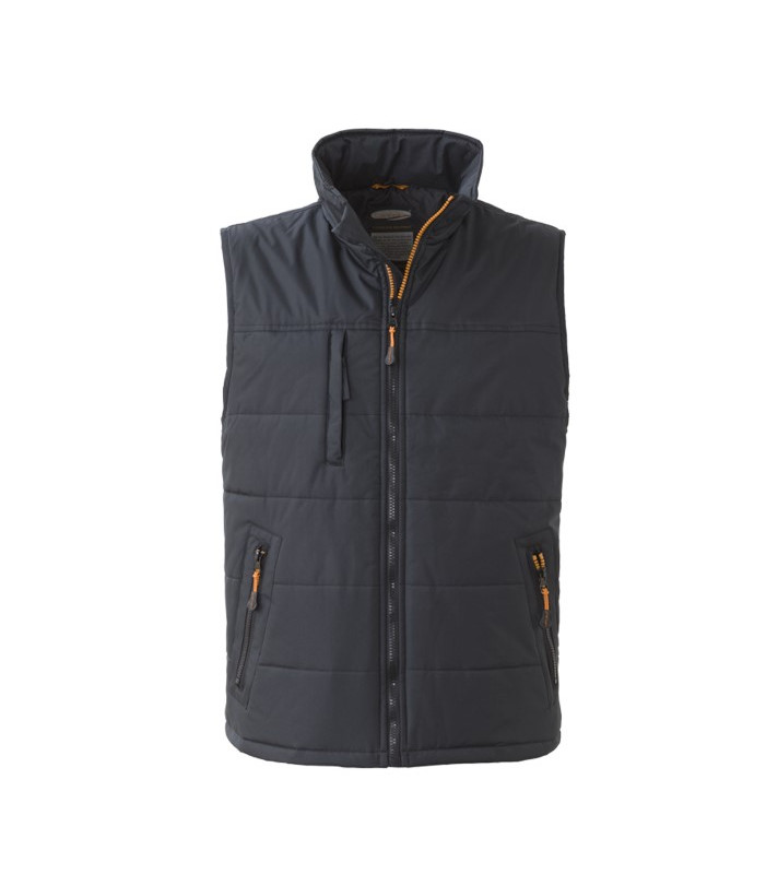 Chiusura anteriore con cerniera bicolore, 2 tasche inferiori a filetto chiuse con cerniera bicolore, 1 taschino a filetto al petto destro chiuso con cerniera verticale, 1 tasca inferiore interna applicata a sinistra. 100% poliestere spalmato