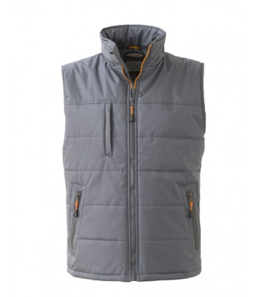 Chiusura anteriore con cerniera bicolore, 2 tasche inferiori a filetto chiuse con cerniera bicolore, 1 taschino a filetto al petto destro chiuso con cerniera verticale, 1 tasca inferiore interna applicata a sinistra. 100% poliestere spalmato