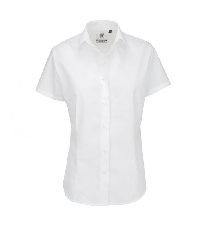 cotone popeline facile da stirare. 100% cotone pettinato. elegante colletto dal taglio femminile. orlo sulle maniche. finiture con pieghe sul retro e sul davanti per un taglio più aderente. bottoni cuciti a croce con effetto madreperla. ultimo bottone con