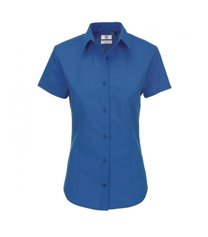 cotone popeline facile da stirare. 100% cotone pettinato. elegante colletto dal taglio femminile. orlo sulle maniche. finiture con pieghe sul retro e sul davanti per un taglio più aderente. bottoni cuciti a croce con effetto madreperla. ultimo bottone con