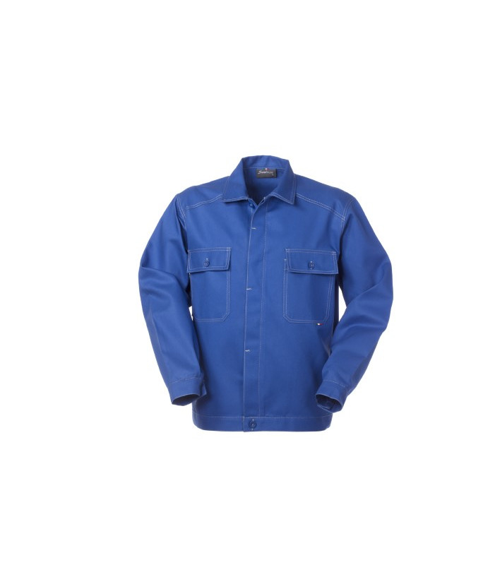 Chiusura anteriore con bottoni coperti, 2 taschini al petto chiusi con aletta e bottone, polsi chiusi con bottone, cuciture di colore a contrasto drill 3/1, 100% cotone irrestringibile, peso 280 g/m2