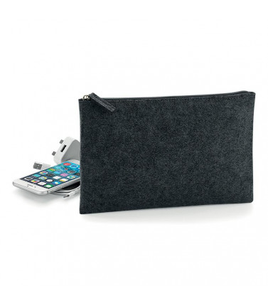 100% poliestere feltro. accessory pouch multiuso con chiusura a zip dello stesso colore, etichetta removibile. dimensioni: 26x17 cm, capacitã : 1 litro, area stampabile: 23x14 cm.