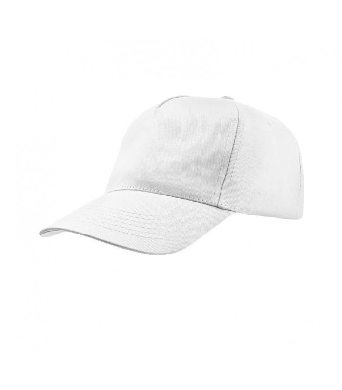 100% cotone. berretto a 5 pannelli con chiusura in velcro, fascia anti-sudore in poliestere, occhielli cuciti, pannello frontale rigido, visiera precurvata, taglia unica.