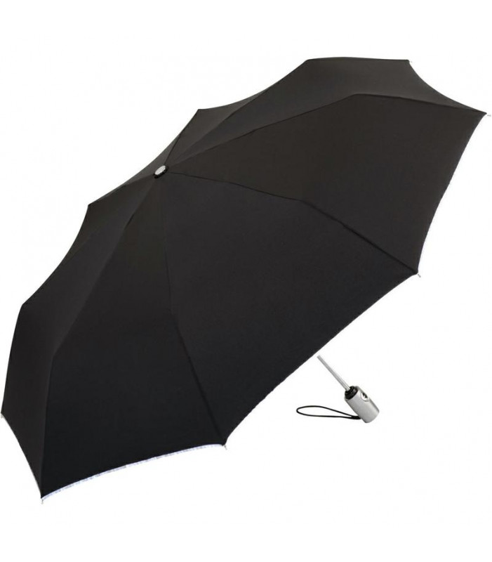 bordatura reflex conf. a en iso 20471 per una migliore visibilitã nel traffico, stecche in fibra di vetro flessibili, confortevole doppia funzione automatica per un'apertura e chiusura rapida, pregiato sistema windproof per una flessibilitã massima del telaio in caso di forti raffiche di vento, manico con finitura in alluminio con pulsante di