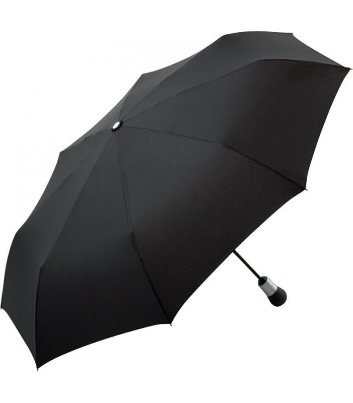 manico argentato opaco a forma di pulsante con possibilitã di applicazione della pubblicitã (p.es. slitta di azionamento), occhiello nella speciale finitura grigio scuro, bastone stabile in fibra di vetro e plastica, pregiate stecche in fibra di vetro e plastica, confortevole doppia funzione automatica per l'apertura e la chiusura rapida, sistema windproof per una flessibilitã del telaio massima in caso di forti raffiche di vento, proprietã della fodera idrofughe e autopulenti grazie al rivestimento in tessuto dupontâ™ teflonâ® originale, pratica custodia con bottone a pressione. diametro: 105 cm, lunghezza da chiuso: 32 cm, 8 pannelli.