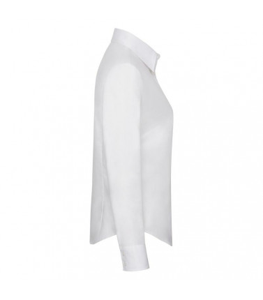 camicia oxford, 70% cotone, 30% poliestere, maniche lunche, collo classico, bottoni perlati ( per il blu e il nero dello stesso colore del tessuto), leggermente sfiancato