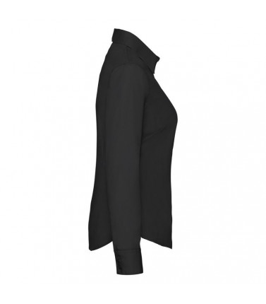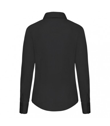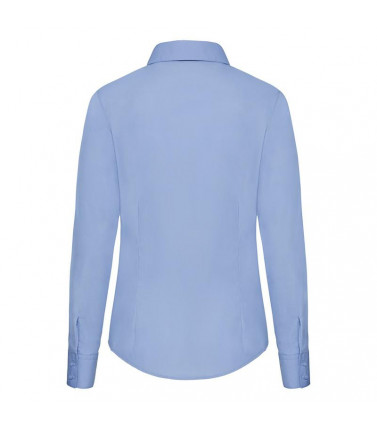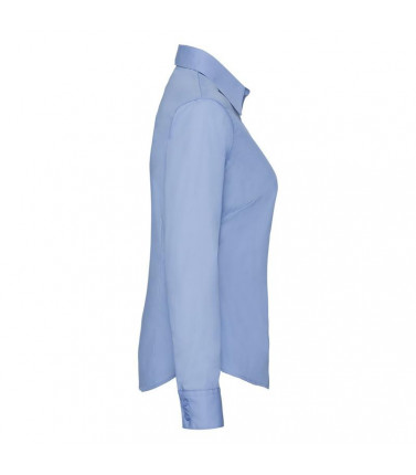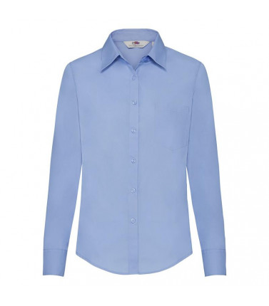 camicia popeline manica lunga donna 55% cotone, 45% poliestere. modello sfiancato con pinces sul petto e nella schiena. bottoni in tinta, taschino lato cuore.