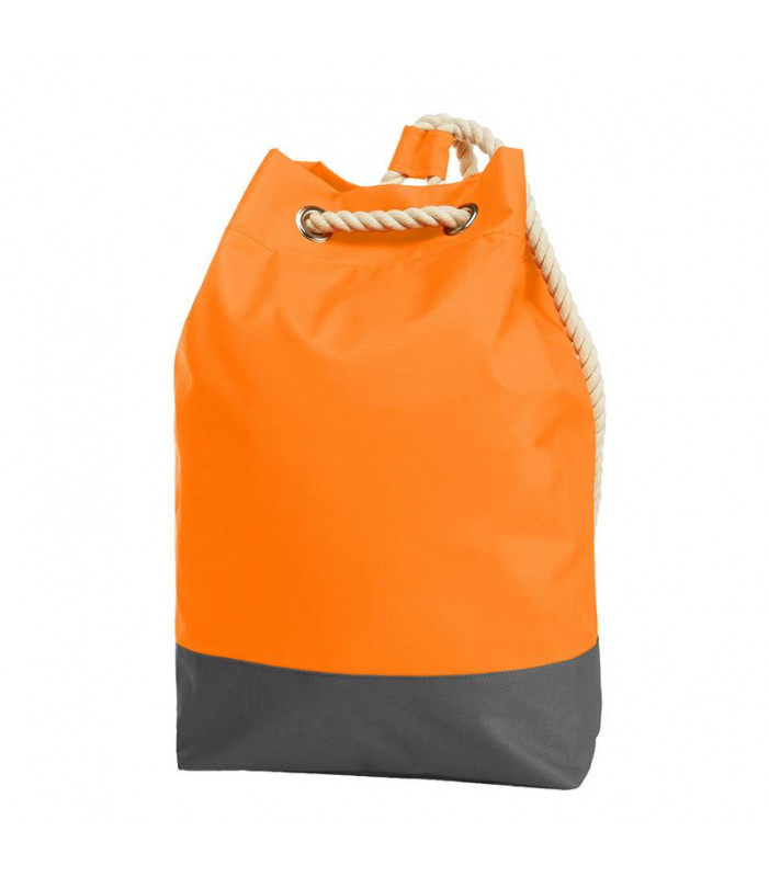 sacca di bellâ’aspetto, zaino grande con occhielli decorativi e spalline in corda, scomparto principale con organizer con chiusura lampo pendente. dim. bxhxp: 32x54x17. area di stampa: 26 x 24 cm.