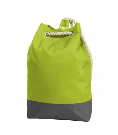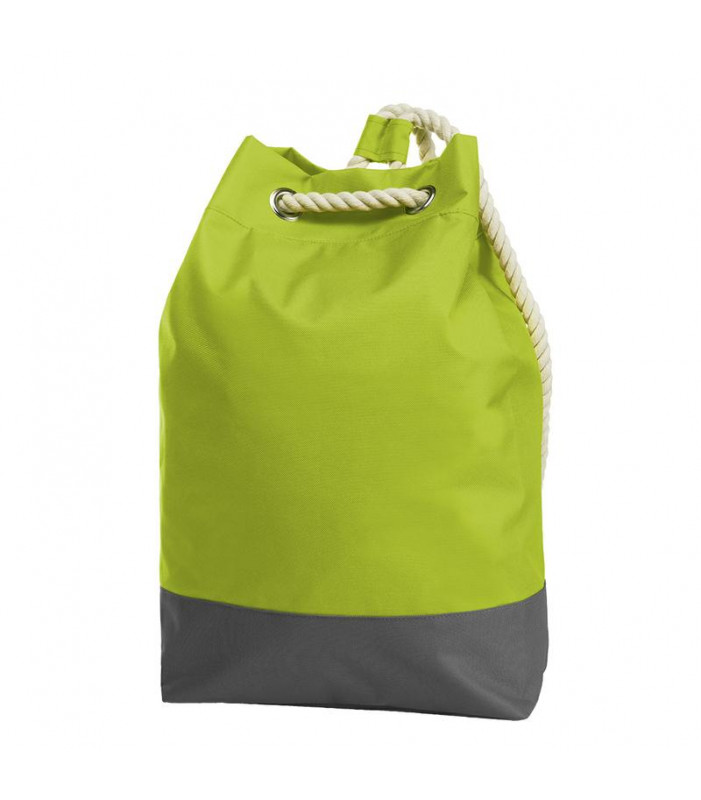 sacca di bellâ’aspetto, zaino grande con occhielli decorativi e spalline in corda, scomparto principale con organizer con chiusura lampo pendente. dim. bxhxp: 32x54x17. area di stampa: 26 x 24 cm.