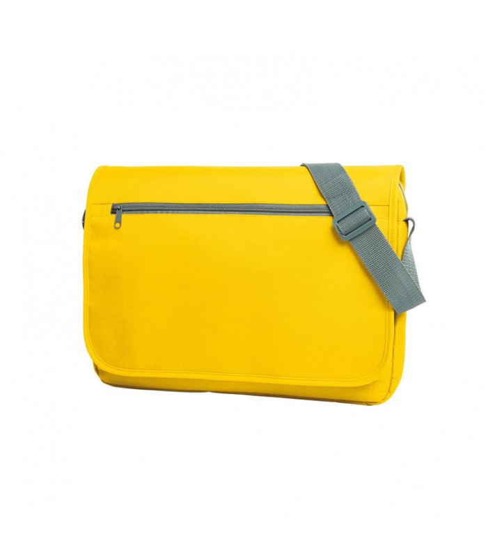 scomparto principale imbottito, 2 scomparti inseribili internamente imbottiti, ad. es per tablet, scomparto piatto inseribile adatto per documenti a4 sotto al risvolto, tasca anteriore con portapenne, risvolto con chiusura a velcro e tasca anteriore con zip, tracolla di fissaggio sul retro per sistema di aste dei trolley, tracolla regolabile in lunghezza con sistema antiscivolo. dim. bxhxp: 41x30x6. area di stampa: 23 x 13 cm.