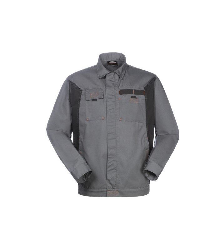 Chiusura anteriore con cerniera coperta, 1 tasca chiusa con velcro applicata al petto sinistro, 1 portacellulare chiuso con aletta e velcro applicato al petto destro, 2 tasche inferiori interne chiuse con velcro, polsi chiusi con velcro, inserti e travettature di colore a contrasto. 60% cotone 40% poliestere peso 245 g/m2