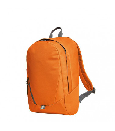 zaino moderno 100% poliestere con tasca anteriore con chiusura lampo, scomparto principale con chiusura lampo bidirezionale e inserto piatto interno, copertura antipioggia, bande riflettenti davanti, schiena e bretelle imbottite, manico.