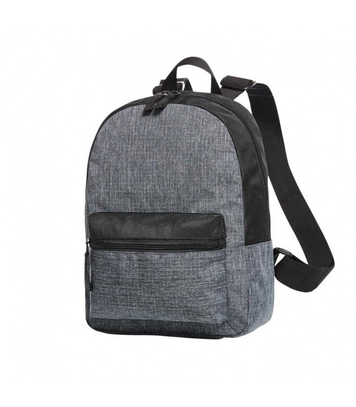 100% poliestere 300d. zaino melange bicolore, scomparto principale con cerniera a doppio cursore, scomparto interno imbottito, tasca frontale con cerniera, fondo imbottito, spallacci regolabili in lunghezza, manico. zona decorativa (serigrafia) sulla tasca frontale: 13 x 5 cm, sopra la tasca frontale 13 x 7 cm. decorazione: serigrafia, ricamo, stampa transfer, doming, etichetta stampata in digitale, personalizzazione in metallo, scatola regalo. dimensioni: 25 x 33 x 10 cm. capacitã : 7,5 litri.