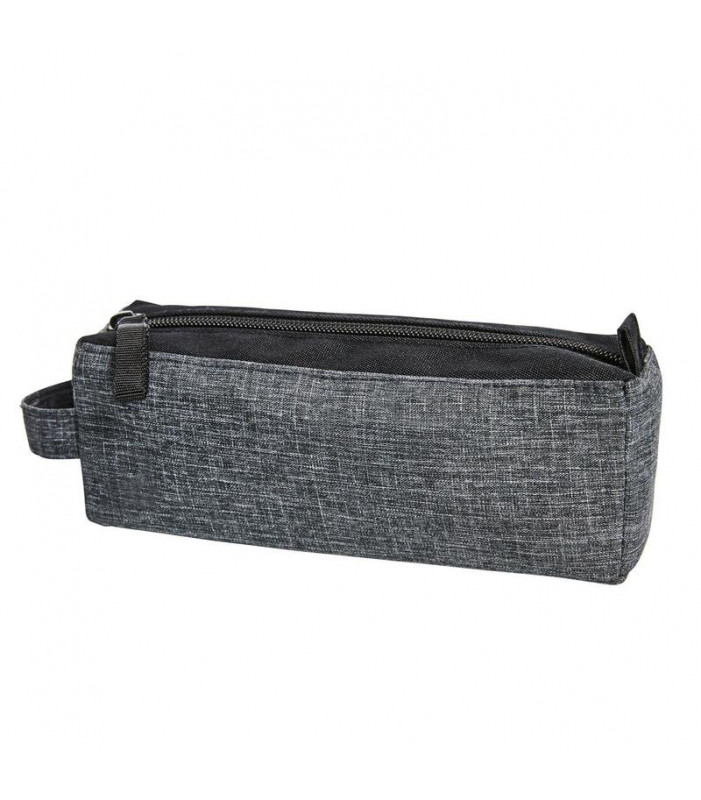 100% poliestere 300d melange. astuccio con scomparto principale con cerniera, maniglia laterale. area decorativa (serigrafia): 14 x 4 cm. decorazione: serigrafia, ricamo, stampa transfer, doming, etichetta stampata in digitale, personalizzazione in metallo, scatola regalo. dimensioni: 20 x 7 x 6 cm. capacitã : 0,5 litri.