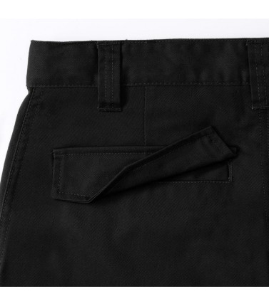 twill, 65% poliestere, 35% cotone, designmoderno, vita elasticizzata per una migliorevestibilità, tasca porta cellulare, 2 tascheposteriori con risvolto, capiente tasca sullagamba destra.