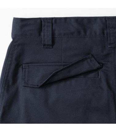 twill, 65% poliestere, 35% cotone, designmoderno, vita elasticizzata per una migliorevestibilità, tasca porta cellulare, 2 tascheposteriori con risvolto, capiente tasca sullagamba destra.