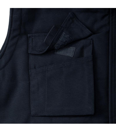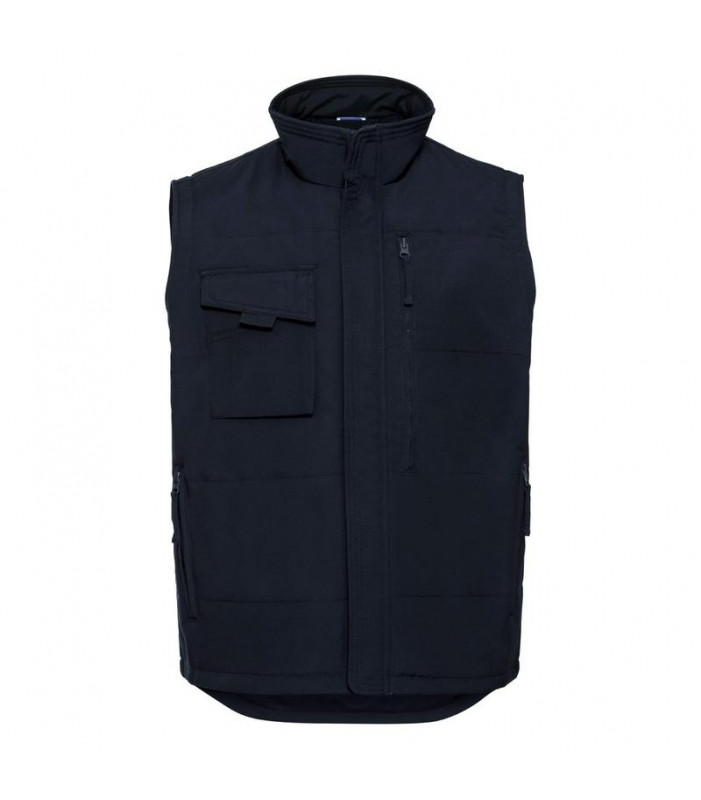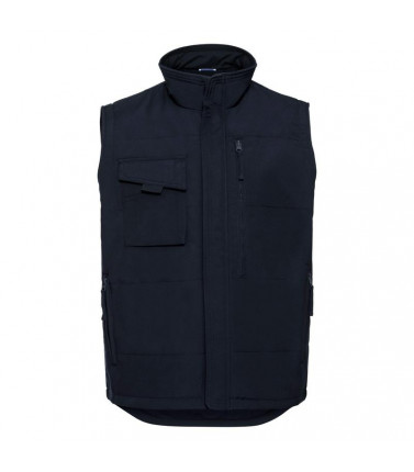 65% poliestere, 35% cotone. gilet resistente, caldo e imbottito, varie tasche pratiche, leggermente piã¹ lungo nella parte posteriore, conforme a iso en26330/105 c06/12945. marchio ce, trattamento antimacchia con duponttm teflon.