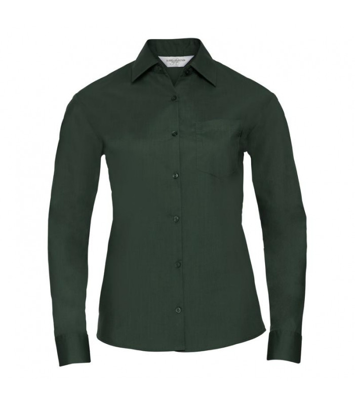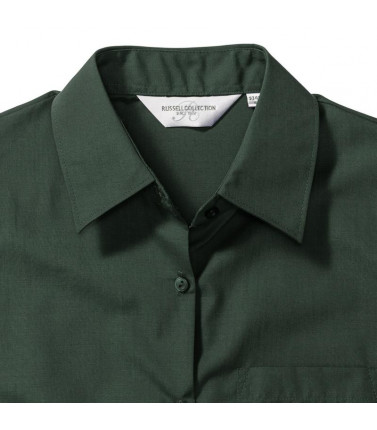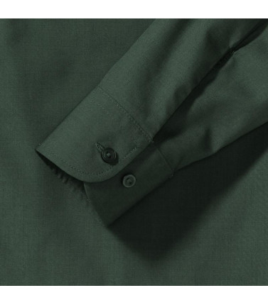 camicia in popeline facile da stirare 65% cotone 35% poliestere. colletto classico con stecche, taschino a v, orlo stondato. polsini stondati con 2 bottoni regolabili.