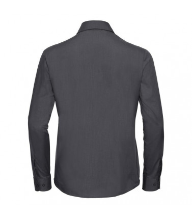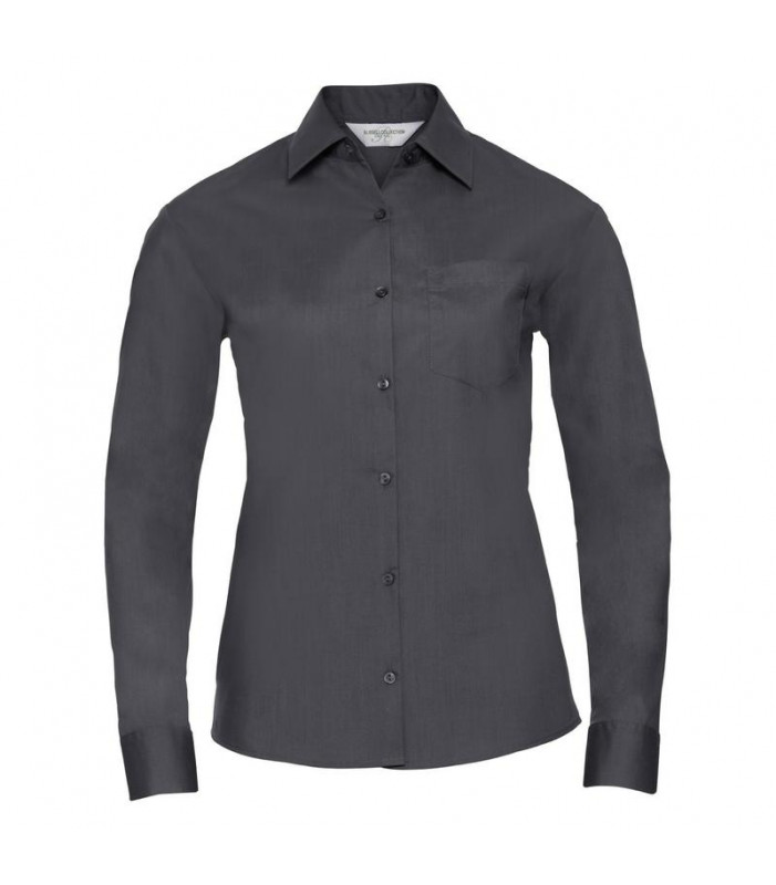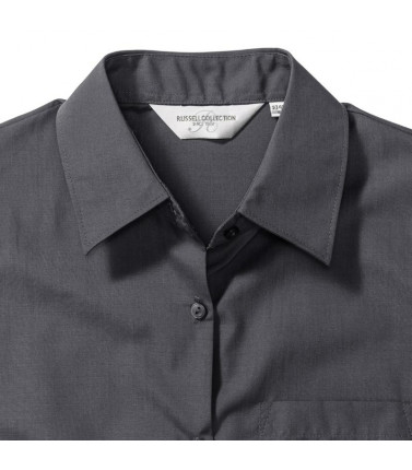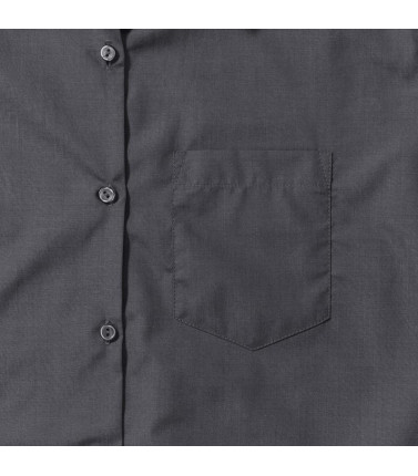 camicia in popeline facile da stirare 65% cotone 35% poliestere. colletto classico con stecche, taschino a v, orlo stondato. polsini stondati con 2 bottoni regolabili.