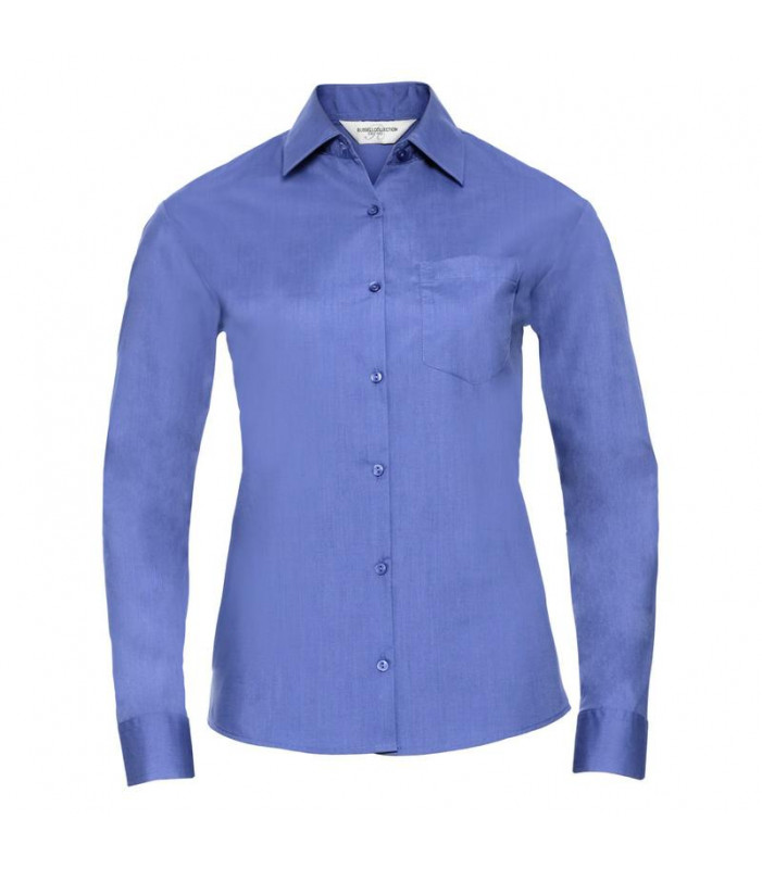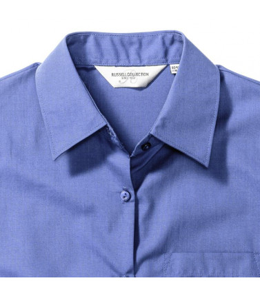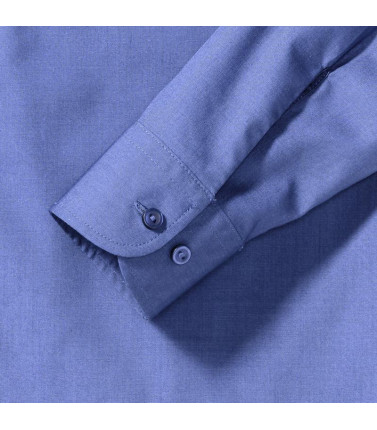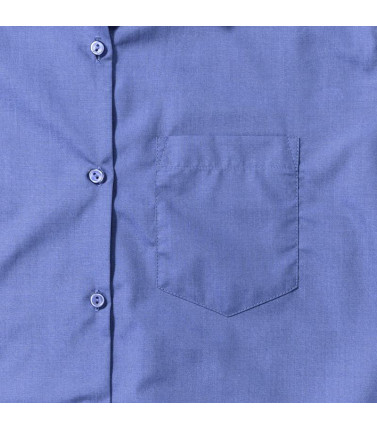 camicia in popeline facile da stirare 65% cotone 35% poliestere. colletto classico con stecche, taschino a v, orlo stondato. polsini stondati con 2 bottoni regolabili.