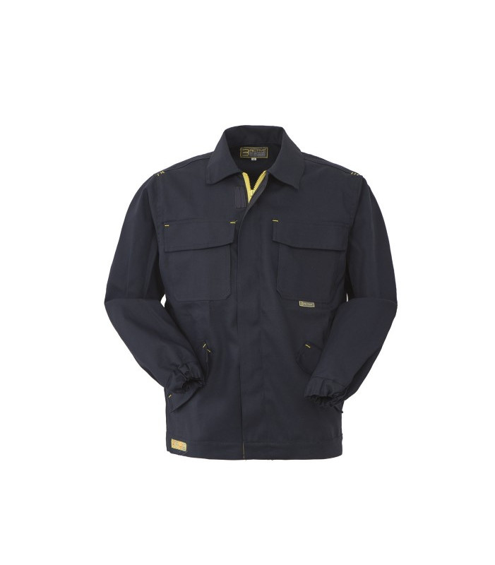 *descrizione modello a magazzino colore 01 in esaurimento* chiusura anteriore con cerniera centrale coperta da patella chiusa con punti velcro, collo a camicia, 2 tasche inferiori applicate chiuse con aletta e velcro, 1 taschino applicato al petto sinistro chiuso con aletta e velcro, polsi al fondo manica con elastico, cuciture a contrasto colore azzurro alle alette delle tasche e taschino, etichetta jacquard con pittogrammi cucita su aletta tasca inferiore sinistra. *descrizione nuovo modello colore 74 in arrivo a ottobre* chiusura anteriore con cerniera centrale coperta da patella chiusa con punti velcro, collo a camicia, 2 tasche inferiori a filetto con apertura obliqua chiuse con aletta e velcro, 2 taschini applicati al petto chiusi con aletta e velcro, polsi al fondo manica con elastico, travettature varie di colore giallo a contrasto, etichetta jacquard con pittogrammi cucita su cintura. 75% cotone 24% poliestere 1% fibra conduttiva, peso 260 g/m2