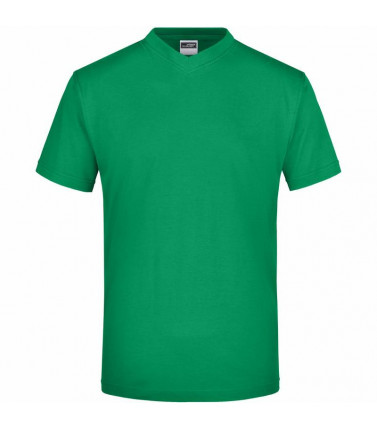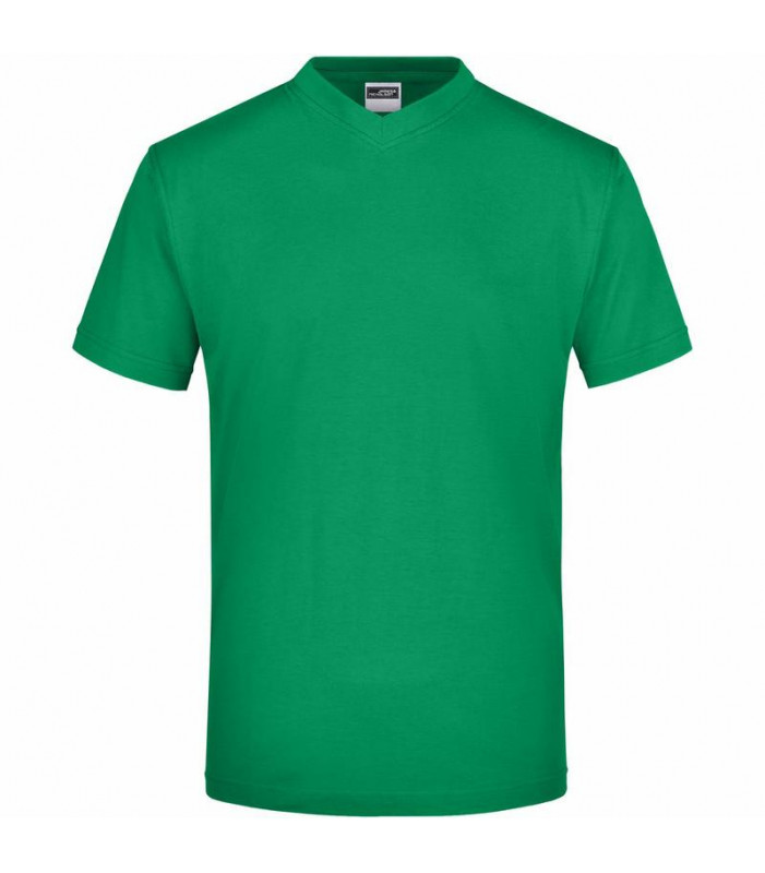 t-shirt comfort in single jersey, collo a v con elastan. senza cuciture laterali, necktape. cuciture doppie sulle spalle, sullo scollo e sul giromanica. tessuto esterno (150 g/mâ²): 100% cotone. manica corta, senza cuciture laterali.