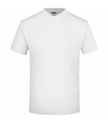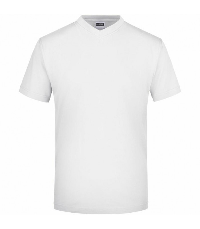 t-shirt comfort in single jersey, collo a v con elastan. senza cuciture laterali, necktape. cuciture doppie sulle spalle, sullo scollo e sul giromanica. tessuto esterno (150 g/mâ²): 100% cotone. manica corta, senza cuciture laterali.